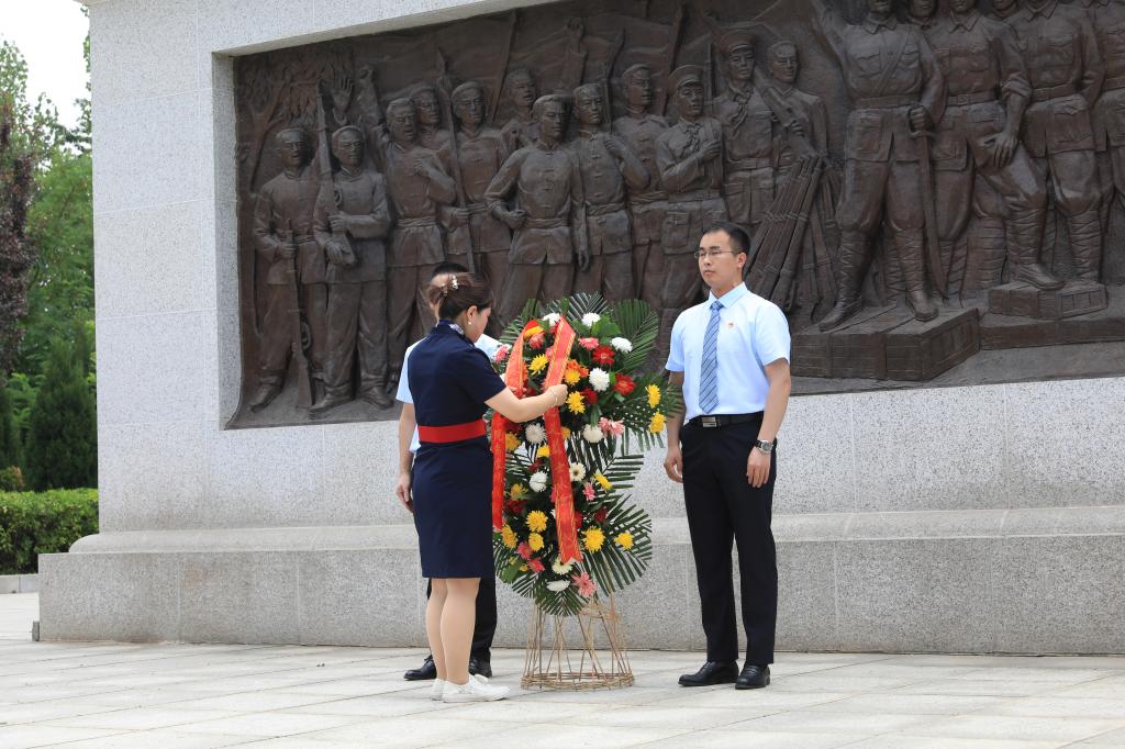 在渭华起义纪念碑前,全体党员满怀敬仰之情举行了庄重的纪念仪式。伴随着深情的《献花曲》李栋、郭家赫稳稳抬起花篮,缓缓走向人民英雄纪念碑,摆放在纪念碑基座上。商学院院长董媛缓步登上纪念碑基座,在花篮前驻足凝视,瞻仰人民英雄纪念碑,她迈步上前仔细整理花篮上的缎带,与大家一同向革命烈士三鞠躬。鲜艳挺拔的菊花,寄托着对英雄先烈的深切缅怀和崇高敬意。