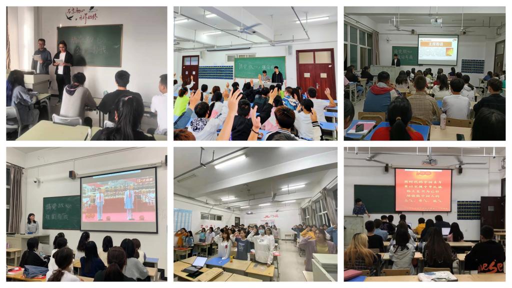 团日活动五彩纷呈,形式多样。各二级学院团总支组织各团支部通过重温入团誓词,唤起了每一位团员的团员意识;通过观看习近平总书记在庆祝中国共产党成立100周年大会的重要讲话以及共青团员和少先队员代表的集体献词的视频,结合疫情防控、奥运精神等展现青年担当;通过诗朗诵回顾我们党百年奋斗的光辉历程,领悟伟大的建党精神内涵;通过举办知识竞赛,在问答中学习知识、坚定信念。各团支部围绕践行“请党放心,强国有我”的庄严承诺,开展学习讨论。大家纷纷表示要将“请党放心,强国有我”青春誓言转化为奋进新征程、建功新时代的实际行动,为实现中华民族伟大复兴贡献青春力量。最后,各团支部组织同学们齐唱《歌唱祖国》,共庆祖国七十二年华诞。