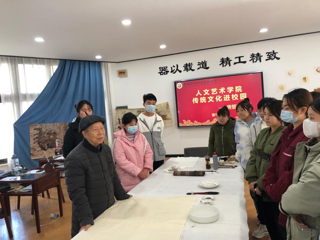 为传承和弘扬中华美学精神,引导学生近距离品味和感知中华传统技艺,亲近非遗文化,持续开展传统文化进校园活动,2021年11月30日,人文艺术学院邀请省工艺美术名誉大师董守信走进课堂演示和传授唐壁画复制技艺。人文艺术学院院长贺兴文,省级工艺美术大师王玉芳、艺术教研室教师及2020级工美专业学生参与了此次实践活动。