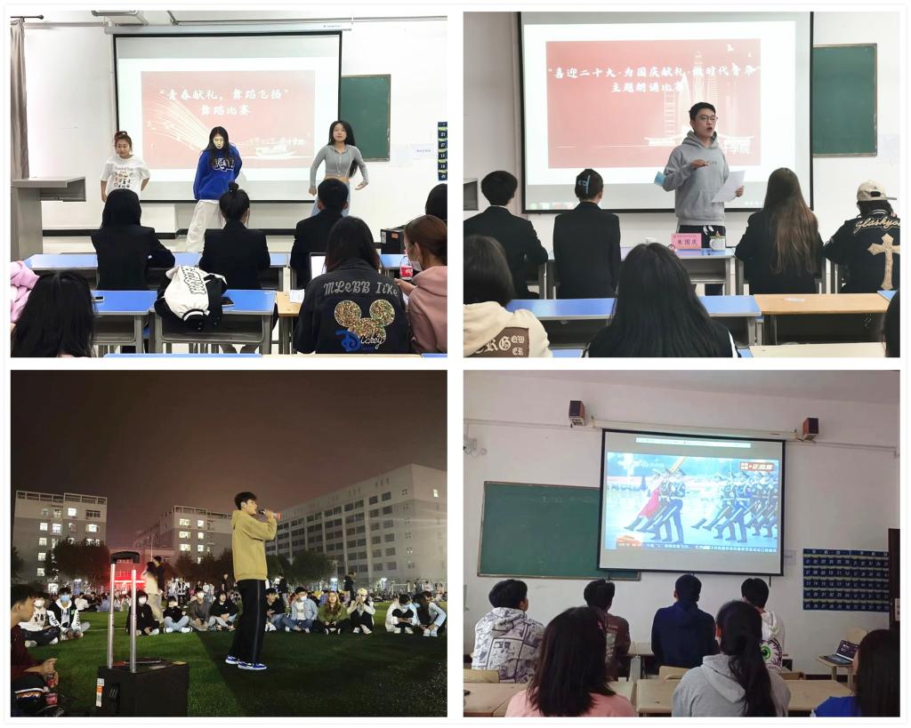 会计学院举办了“音为有你”草地音乐节、首次“师生面对面 沟通零距离”师生座谈交流会、“喜迎二十大,为国庆献礼,做时代青年”朗诵比赛、“竞起来 向未来 互联中国梦”电子竞技交流活动、“青春献礼,舞蹈飞扬”舞蹈比赛、“三行情诗颂祖国”、观看爱国主义经典影片等活动。通过丰富的活动,发挥了文化育人功能,发掘了青年学子的潜力和艺术特长,展示出新时代陕财学子团结热情的精神风貌;引导青年向上向善,激发青年的报国志、爱国情,激励广大师生铭记革命历史,延续红色血脉,弘扬奋斗精神,牢记初心使命,践行爱国主义。