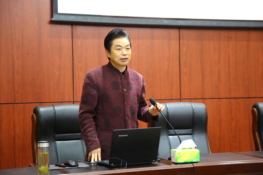 全国劳动模范、中国工艺美术大师、我校人文艺术学院院长贺兴文为同学们作报告