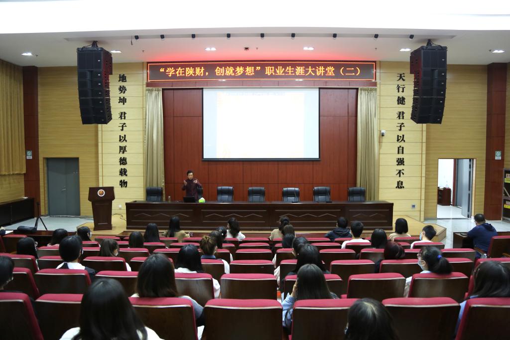 与此同时,“学在陕财·创就梦想”职业生涯大讲堂活动的第三期在继续教育培训厅举办,学生工作处大学生就业指导中心赵肖以“动态定位,从心出发——疫情常态化下的大学生职业生涯规划”为题,引导学生客观定位,认清现状,积极就业。据会后统计,两次讲座共有线上线下近2000师生观看。