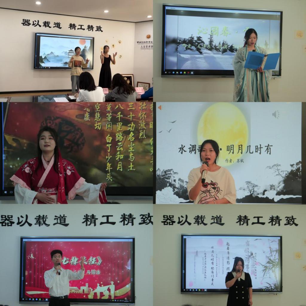 为弘扬中华优秀传统文化,加快学院语言文字规范化建设,提高学生人文素养,4月19日下午,人文艺术学院在花画实训室顺利举办了“收百世之阙文 采千载之遗韵”——中华诵写讲系列活动之经典诗词诵读大赛总决赛。学院语言文字工作委员会马晶照、刘丹柏、陈玉芳、王娟、付佳、田君熙、魏兰妤等参与活动并担任评委。