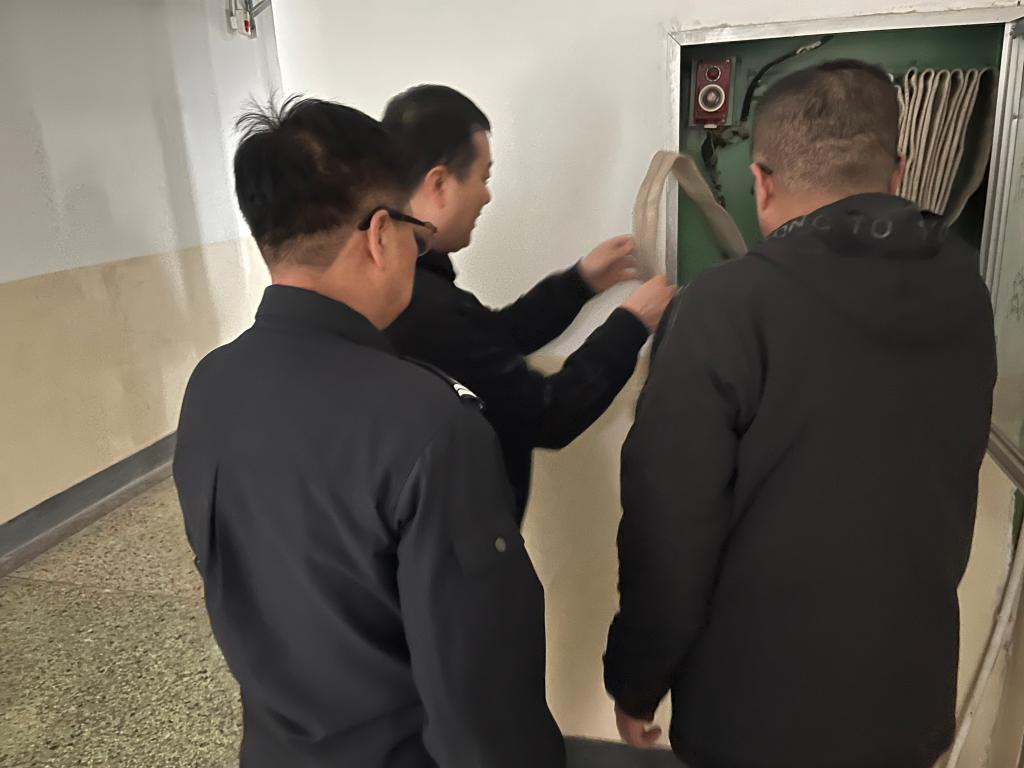 检查开始前,张朴处长对安全大检查工作进行详细部署,随后安保科科长蔺卫强、消防科副科长吴楠和驻校民警吴警官带队前往实训楼、餐厅、综合教学楼,图书馆及地下车库分等区域进行全面排查,重点对消防安全责任制度与防火巡查的制度是否落实到位;疏散通道、安全出口是否畅通;疏散指示标志、应急照明灯、防火门配置是否符合要求;消火栓、灭火器等消防器材是否完好有效等情况进行了全面检查。检查结束后,保卫处第一时间为实训楼所有室内消火栓更换了消防水带,在部分区域增加灭火器,并就检查中发现的安全隐患与相关部门人员现场进行沟通,对能立即整改到位的安全问题责令立即整改,排除安全隐患,对不能立即整改到位的安全问题,要求相关部门明确责任人,限期整改到位,务必及时肃清消防隐患点。