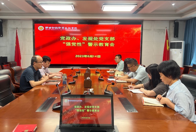 6月19日上午,根据纪委《关于在全院开展第六个纪律教育学习宣传月活动的通知》(陕财职院纪〔2023〕4号),图书馆在工会活动中心105办公室开展了纪律教育学习宣传月政治理论学习及警示教育活动,全体党员干部参加了会议,会议由支部书记雷剑主持。