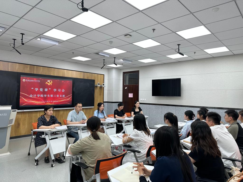 以学促思,“学党章”专题教育汲养分。6月19日下午,数字商务学院党总支学院组织党员干部学习习近平总书记关于党章的重要论述和新修订的《中国共产党章程》内容,教育引导支部党员不断强化理论武装,进一步增强清正廉洁的思想觉悟和政治定力,严守政治纪律,练就过硬本领,推动学校高质量发展。在学习中进一步汲取精神营养,不断提高政治判断力、政治领悟力、政治执行力,把学习成果转化为推动工作的强大动力。