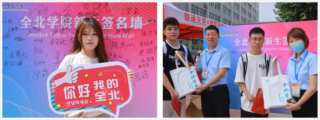——用“新”用情以礼相迎,多措并举开展新生入学仪式。为迎接首届学子到来,我院精心策划了2023级新生入学仪式。彰显全北学院中外合作办学特色红地毯、签名墙、欢迎牌、伴手礼,在新生报到现场,形成了一道靓丽的风景线。携手走红毯,启航新征程,新生走过报到注册点前的十米红毯,开启崭新的大学生活。新生在签名墙上庄重的签下自己的名字,并举起“全北学院欢迎你”“我是全北小萌新”等欢迎牌照相打卡,定格大学第一天。授之以理,赠之以礼,我院全体教职工在签名墙下,亲手为新生送上印有学院校风校训的笔记本、印有学院logo的签字笔以及具有全北学院特色的帆布袋组成的迎新伴手礼,激励学子珍惜时光、勤奋学习。走心文化和暖心情感,为校园营造了“家”的温馨,让新生一进校门就有了归属感和自豪感,全北学院这个“新家”也收获了广大新生和家长的真心点赞。