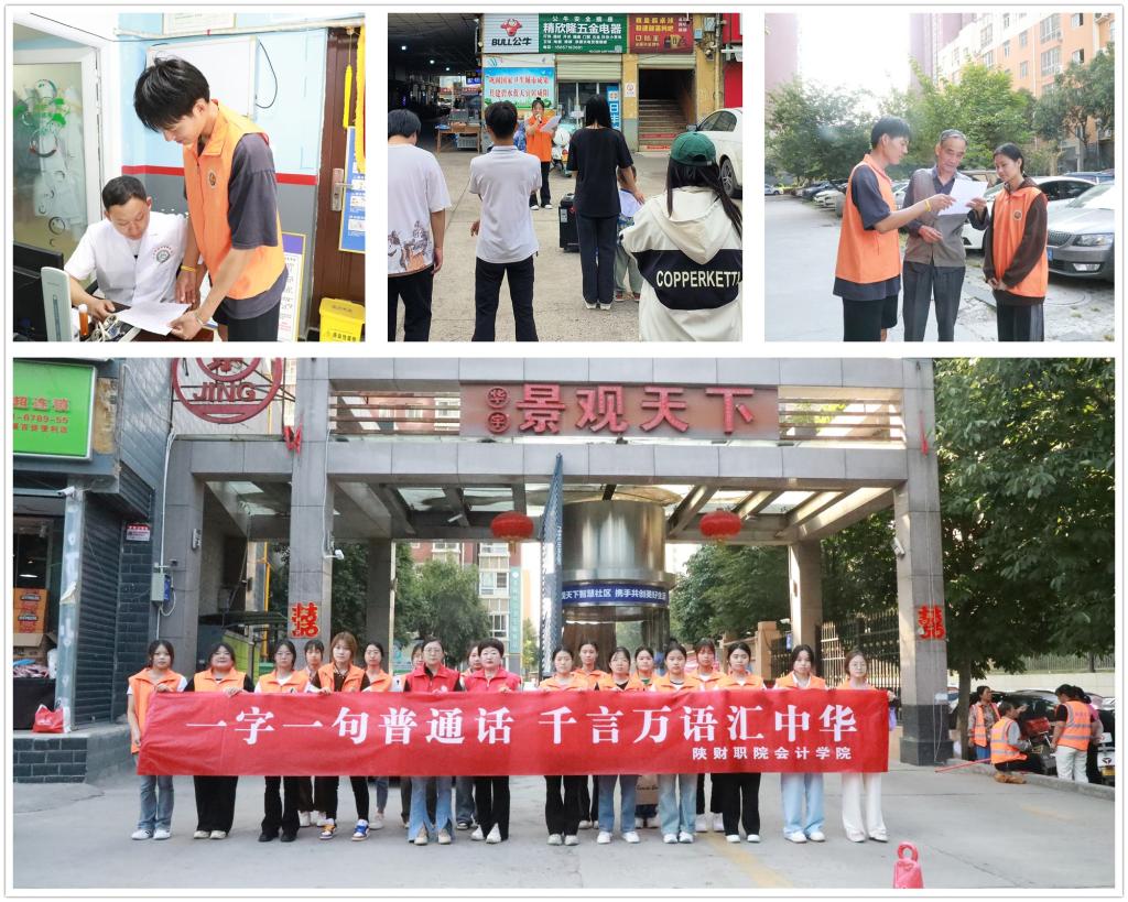 为深入学习贯彻落实习近平总书记关于做好推广普及国家通用语言文字工作的重要指示精神,传承弘扬中华优秀语言文化,在全社会营造学习使用国家通用语言文字的浓厚氛围。9月16日,会计学院在文林路华宇景观天下小区开展“青春实践社区行推普宣传正当时”推普进社区活动。