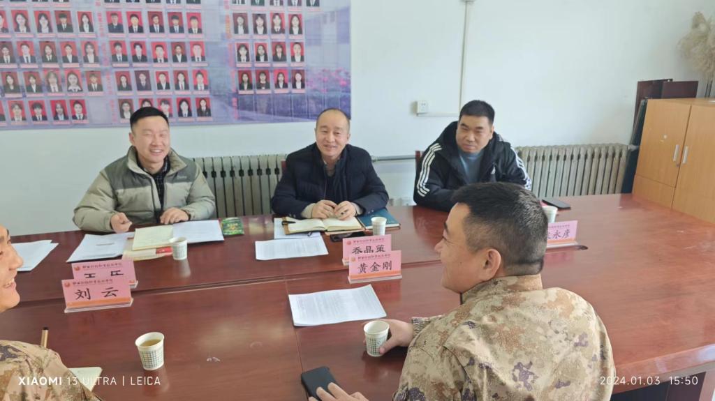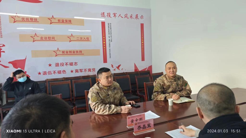 1月3日下午,咸阳市秦都区人民武装部部长黄金刚、军事科科长刘云来我校调研指导2024年度春季大学生征兵工作。校学生工作处处长乔晶策、副处长袁永彦,征兵工作站王乐参加了座谈会。