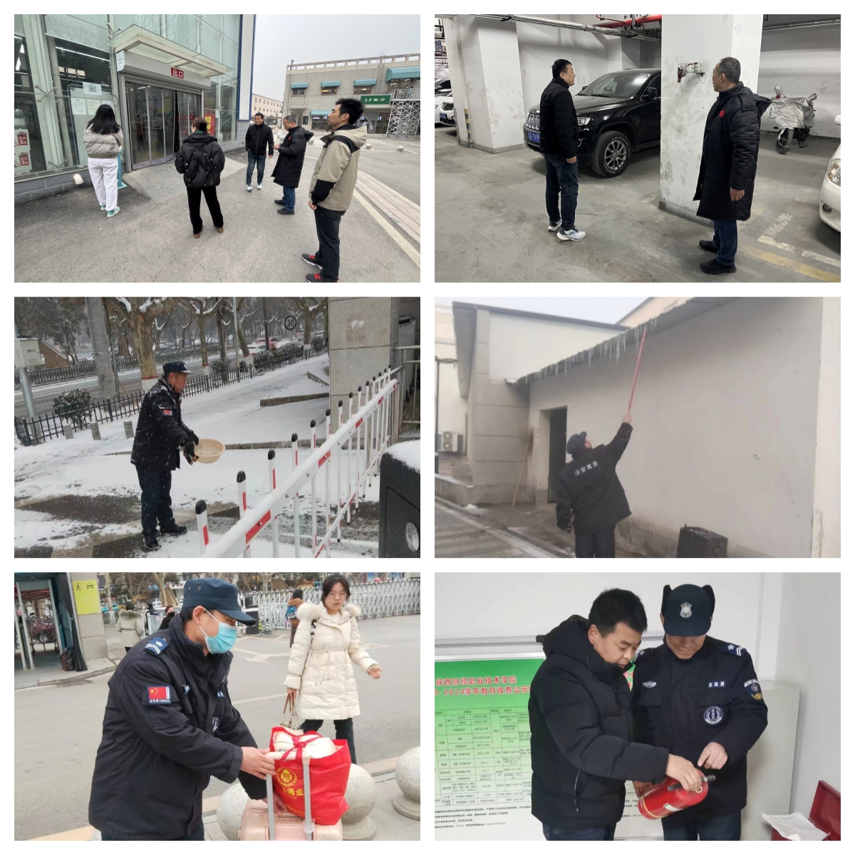开学前夕,咸阳出现连续强降雪天气,给校园安全出行带来诸多不便。保卫处第一时间全面清扫学校南北两院出入口的积雪,同时撒融雪剂、清除屋檐的冰凌。经过紧张劳动,学校通行重点区域的积雪和冰凌清扫完毕,为即将返校的师生及通行车辆开辟了一条温暖的通畅之路。