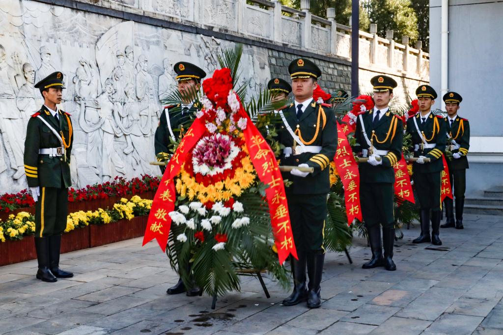 全体人员依次绕行瞻仰革命纪念碑,并向长眠于此的烈士献上鲜花,表达对先烈的缅怀和敬意。