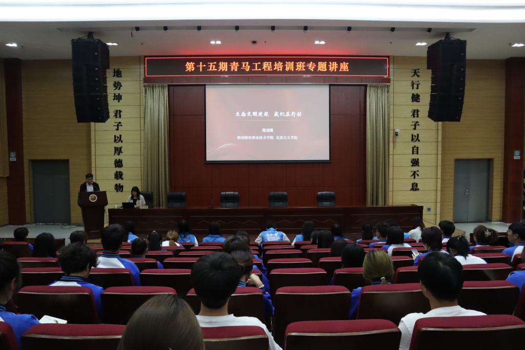 5月14日下午,团委举办第十五期“青马工程”培训班(团校)专题讲座。陕西省高校思政课“大练兵”思政课程“教学能手”陈洁楠和我校“两弹一星”志愿宣讲团成员为我校第十五期青马学员带来了一堂生动鲜活的专题讲座,我校400余名青马学员参加了此次活动。