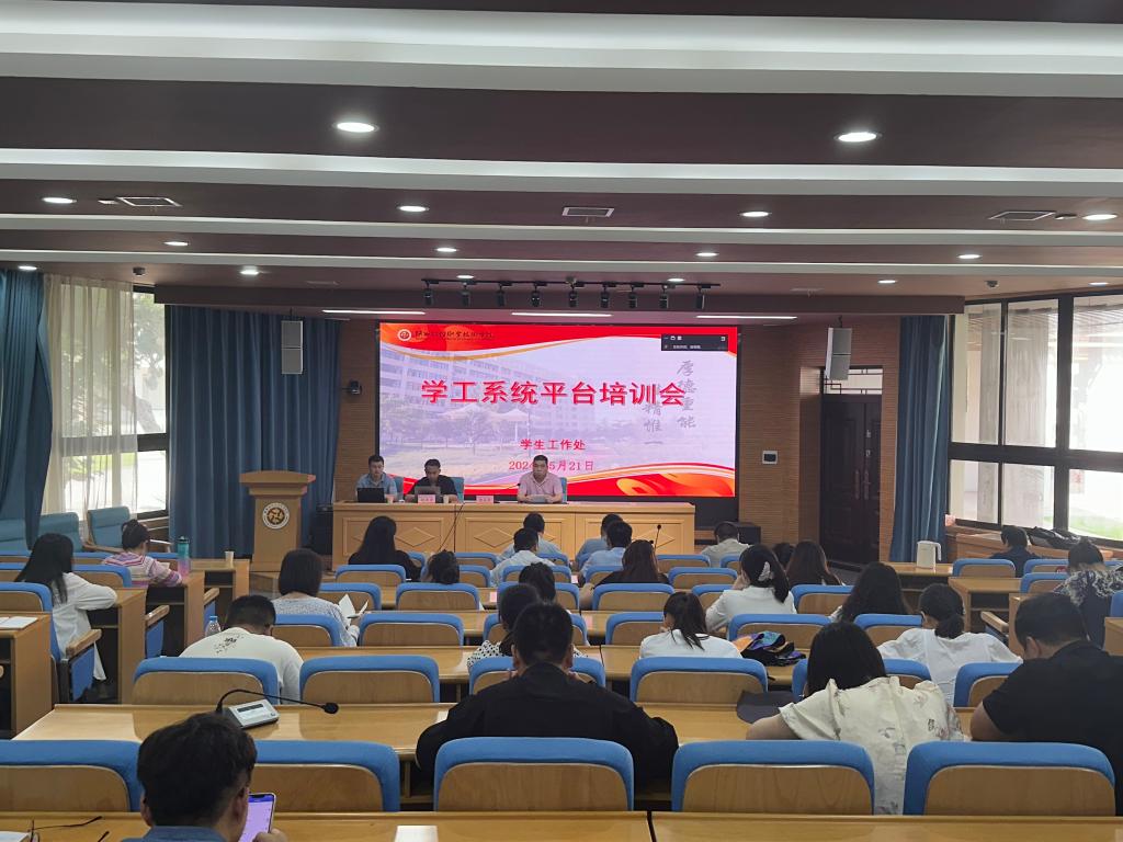 为进一步加强学工队伍建设,提升学生管理工作信息化水平,5月21日上午,学生工作处在继续教育培训厅举办2024年度学工系统平台实操应用培训会。各二级学院学生科科长、团总支书记、全体辅导员、班主任代表共计70余人参加培训。会议由学生处副处长袁永彦主持。