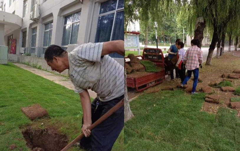——绿化保洁工作每日进行。假期持续高温,校园绿化树木花草受到干旱的考验。为确保校园花草树木顺利过夏,综合科绿化管理人员高度重视绿化养护,对校园内的草坪、花草和树木进行隔日整体浇灌,每周一次修剪、清除杂草、杀菌防虫等工作。对局部生长不旺盛草皮进行再次补栽,对因踩踏等造成草皮边缘缺失进行土壤疏松、播撒草种,确保开学前每一块草皮都绿草如茵。及时完成秋季校园迎新布置工作,以优美的花卉迎接新生到来。保洁人员每天对学院公共区域进行清洁打扫,确保校园干净整洁。