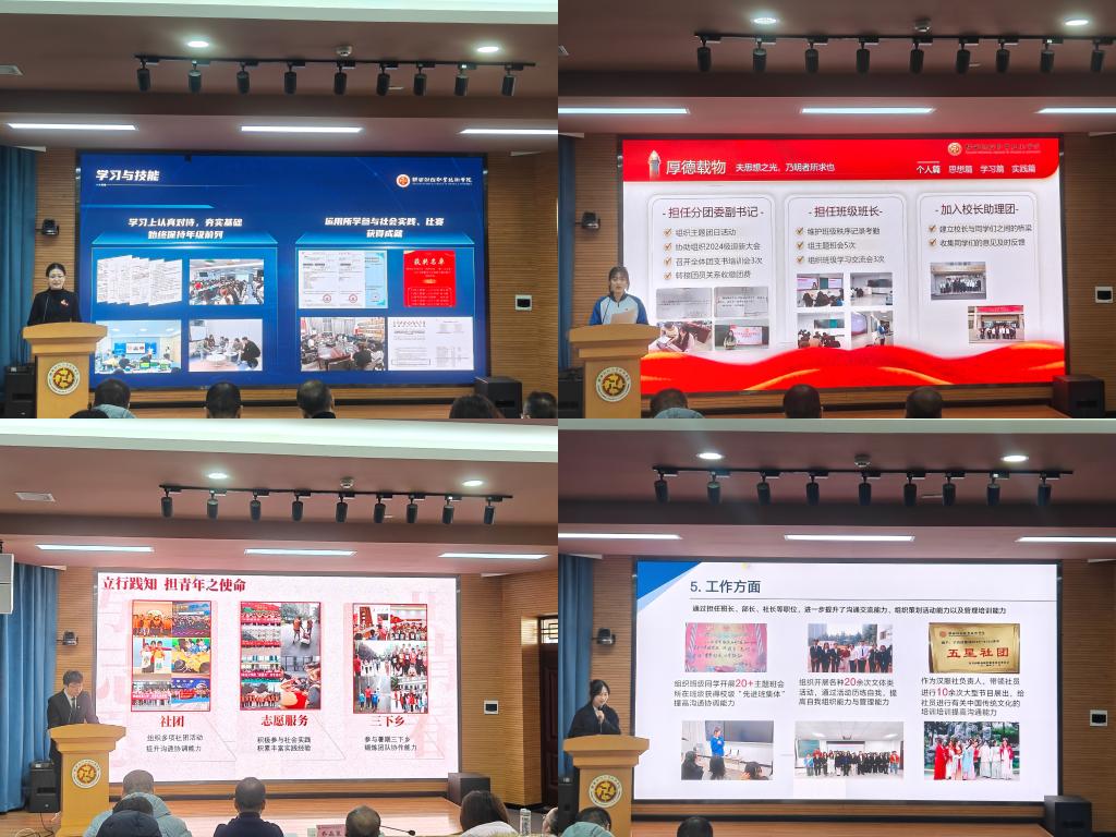答辩会上,32位由各二级学院选送的大学生年度人物候选人,从社会实践、创新创业、自强不息、全面发展、多才多艺等方面进行答辩,分享成长筑梦之旅的艰辛与荣光,讲述奋斗历程的付出与收获,充分彰显了我校学子踔厉奋发、追求卓越的优秀品质。