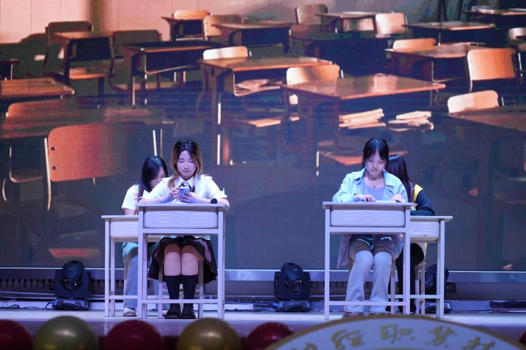 高新校区的剧目《滴答之间:重塑自我》,将微信、抖音、游戏等app拟人化演绎,生动有趣,让观众在嬉笑中感受到陷入时间困境的无奈与迷茫。最终在“母亲”平凡而动人的话语中感悟珍惜时间,学会自律,努力学习。