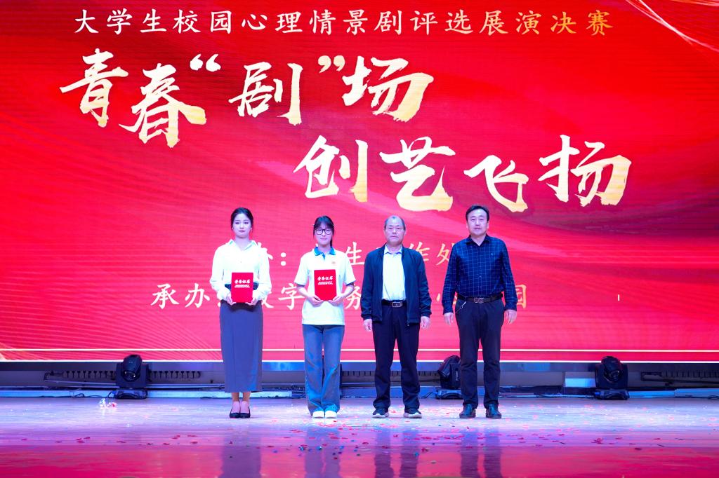 为贯彻落实教育部、教育厅全面加强和改进新时代学生心理健康工作专项行动,做好我校心理育人工作,进一步培养学生自尊自信、理性平和的积极心态,营造温馨和谐的校园氛围,我校于4月14日在学校大礼堂成功举办了“青春剧场 创想演艺”大学生心理情景剧决赛展演。本次比赛由学生工作处主办,数字商务学院立德书院承办。学校副校长雷旭出席并致辞,学生工作处处长、副处长,各社区书院院长,二级学院书记、副书记,全体入围比赛师生及学生观众共计1000余名人员参加。