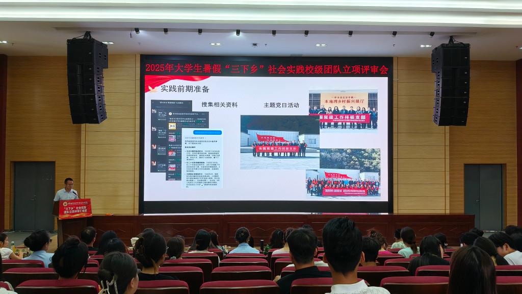 为确保2025年大学生暑期“三下乡”社会实践活动高质量开展,前期经各二级学院初审,校团委共收到48份立项申报书,来自政府、高校、企业的7位评委对申报材料进行评审,共35支团队进入立项汇报环节。