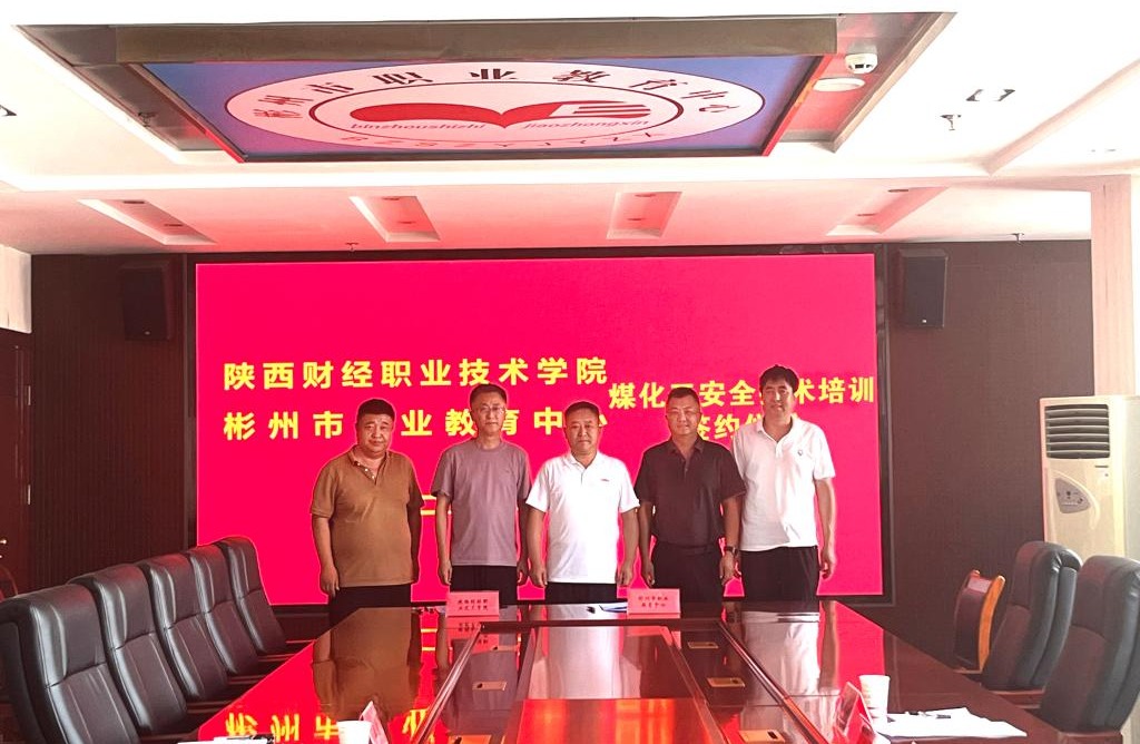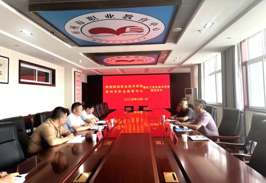 为深入贯彻落实国家安全生产战略部署,切实提升煤化工从业人员安全素养,2025年7月1日下午,陕西财经职业技术学院、彬州市职业教育中心、陕西中锐合创教育科技有限公司三方举行煤炭化工安全生产培训签约仪式。彬州市职教中心校长张骋、工会主席李超、培训中心主任刘刚,陕西中锐合创教育科技有限公司总裁杨向庆,我校应急管理学院院长李刚刚、办公室副主任杨洋等人出席本次签约仪式。