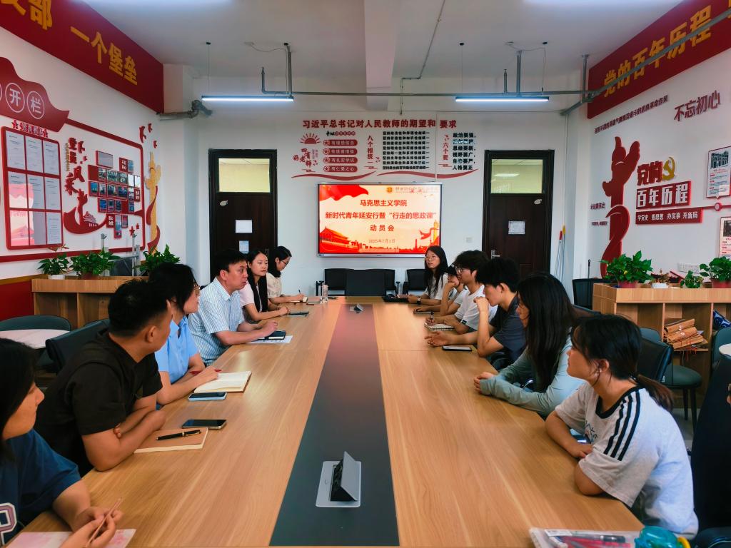 为深入贯彻落实习近平总书记关于“用好红色资源、赓续红色血脉”的重要指示精神,将立德树人的根本任务融入鲜活实践,马克思主义学院积极创新思政育人模式,精心组织开展“行走的思政课”。7月10日至17日,学院组织15名师生组成“新时代青年延安行——红色问道之旅”实践团,奔赴革命圣地延安,将思政小课堂与社会大课堂深度融合,开展了一堂主题鲜明、内涵深刻的“踏寻红色足迹,铸魂圣地延安”大思政实践课。师生们以脚步丈量信仰高地,在寻访革命遗址、开展红色宣讲、参与特色实践、深入场馆调研、沉浸红色剧目的多维体验中,重温峥嵘岁月,感悟思想伟力,于红色基因的源头活水中汲取昂扬奋进、团结拼搏的磅礴精神动力,为强国建设、民族复兴新征程凝聚青春力量。