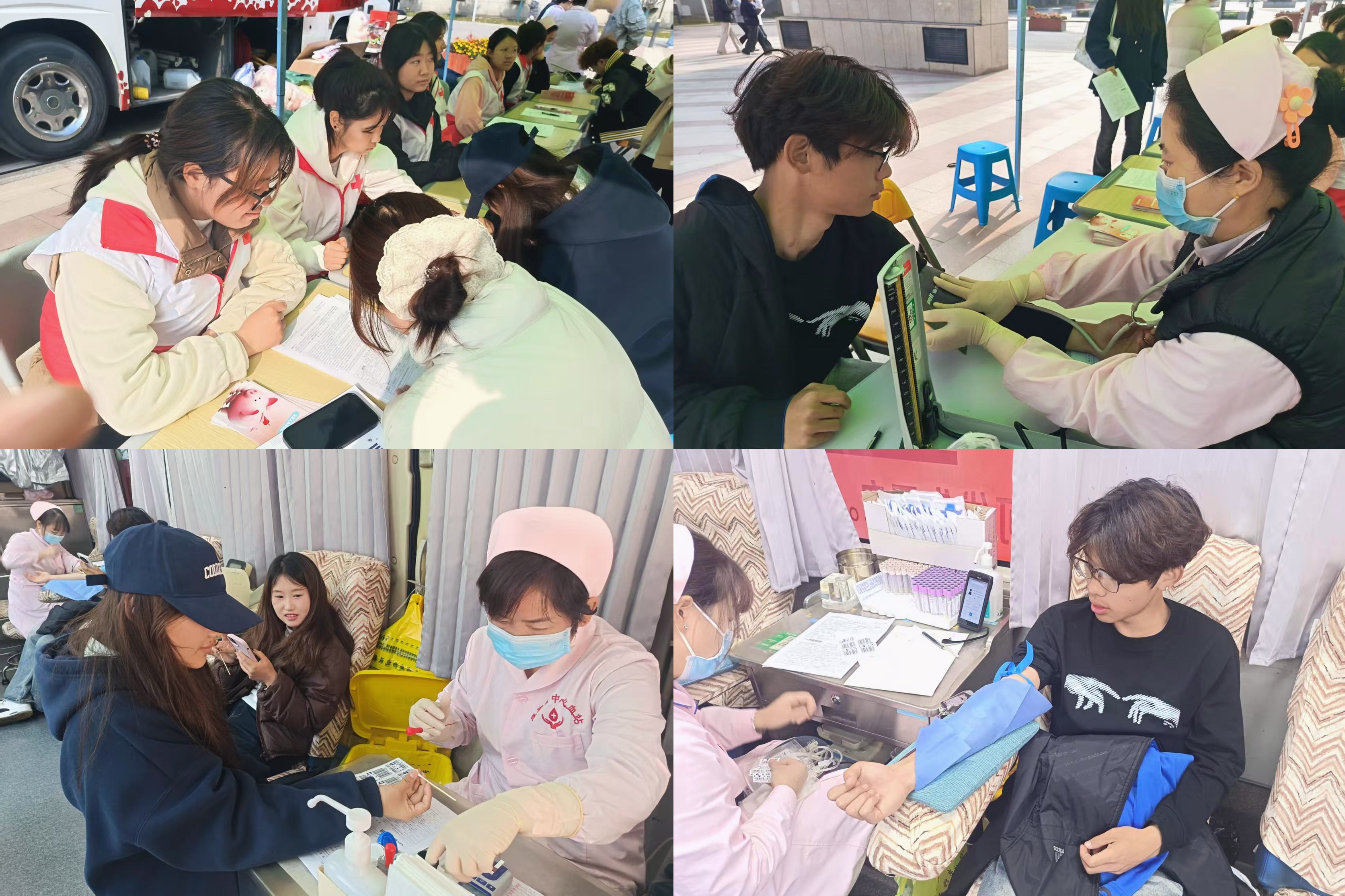 献血活动现场,志愿者们积极投身引导、答疑、送水、派发献血证等服务工作,前来献血的热心学子们有序排队,完成登记填表、体检、初筛、等流程,依次进行献血,以点滴热血为急需救治的患者送去生命希望,用实际行动践行青年担当。