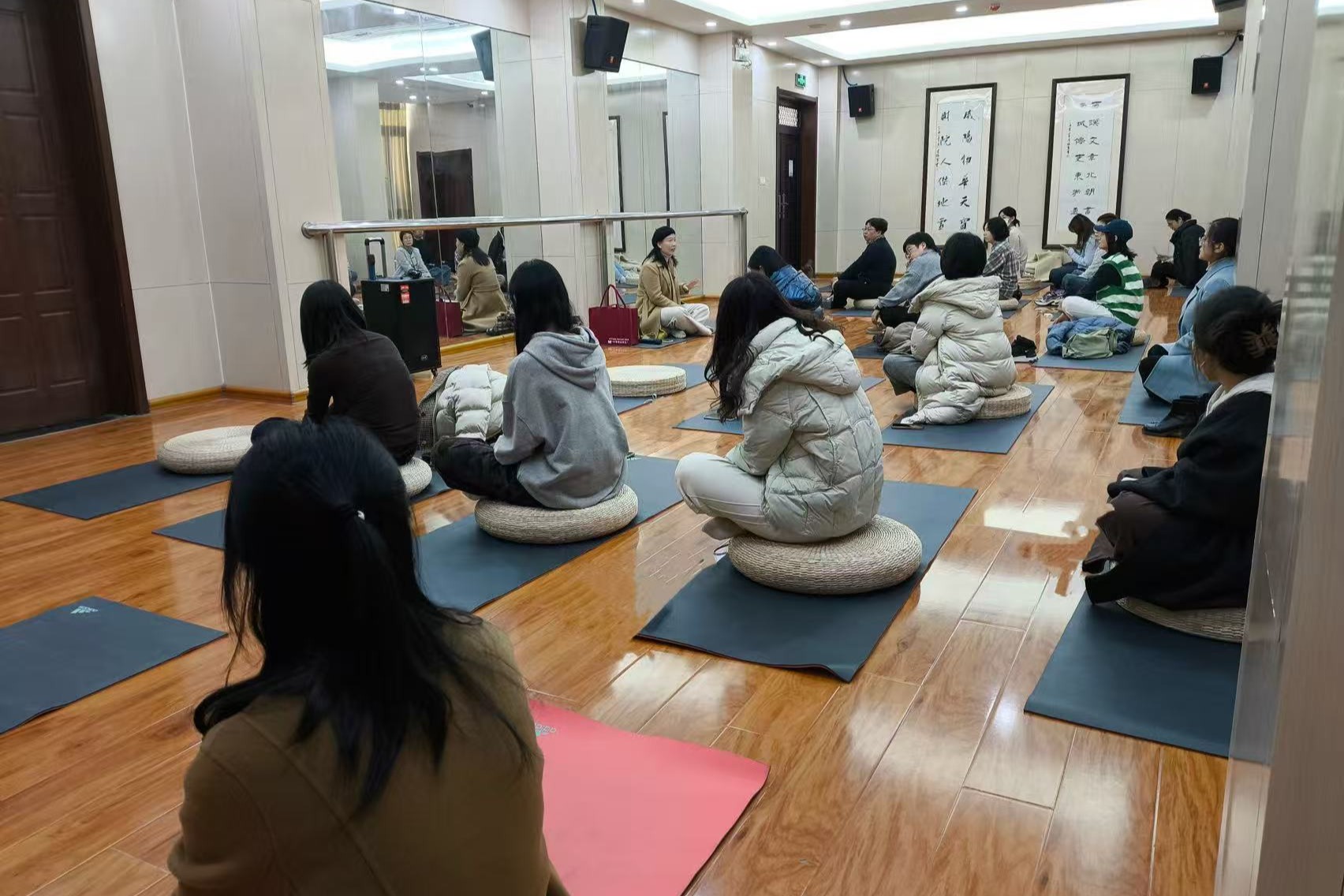 活动特别邀请了中国科学院心理咨询师、国家健康管理师刘雅涵担任指导老师。刘老师结合中国传统文化中的智慧,从东方心理学的独特视角出发,为大家深入浅出地讲解了如何运用正念冥想、呼吸调节、情绪觉察等方法进行自我疗愈。她讲到,东方心理学强调身心合一的理念,通过简单易行的练习方法,能够帮助我们更好地认识自己的内心世界,缓解焦虑情绪,提升心理韧性。
