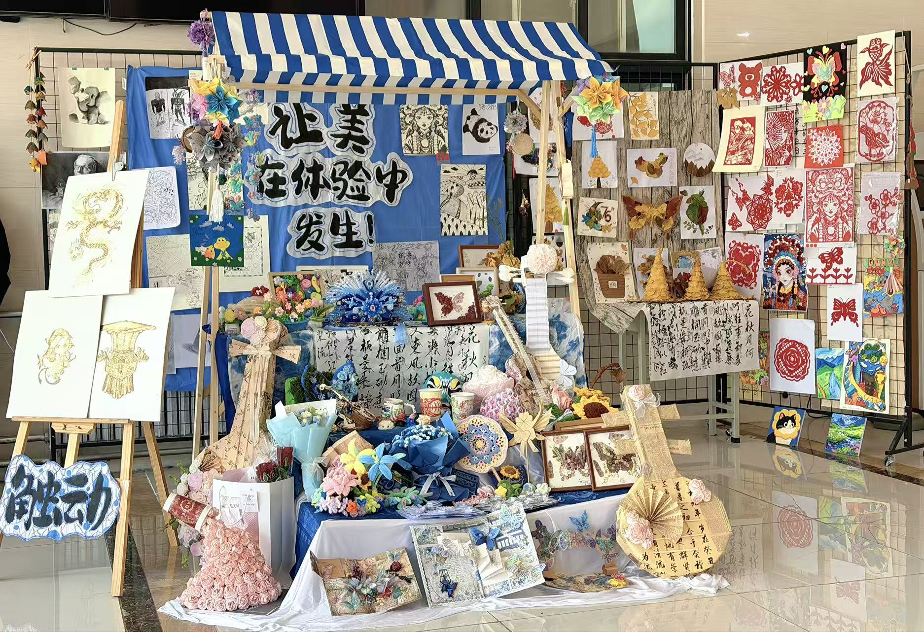 本次展览是学校“一重二融三分四有” 美育教育模式的生动实践。展览打破单一展示局限,以 “平面的诗意”“立体的叙事” 两大板块为核心,通过墙面悬挂、展台陈列等多元形式,集中呈现书法、水彩、陶艺、编织等各类学生佳作,打造沉浸式感知场景。观者在视觉、触觉与情感的多维参与中感受美、体悟美,让美的体验自然生长。展览深度践行 “融课堂于校园、融艺术于生活” 的理念,将课堂理论转化为可感可知的公共艺术体验,更通过设置留言共鸣区、人气投票站等互动环节,搭配学生轮值管理机制,既保障了展览的专业性与有序性,也让美育成果走出教室、融入校园,成为师生共享的文化盛宴。