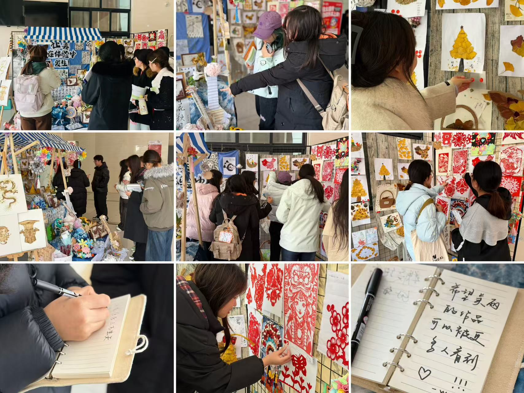 美育课程教学团队全程深度参与展览的指导与交流工作。教师们穿梭于各个展示区域,仔细品鉴每一件参展作品,对学生在创作中展现的艺术创意、实践能力及对美的独特理解给予高度肯定。他们一致认为,本次结课展精准落地了“一重二融三分四有” 美育教育理念,既让学生在创作实践中深化了对美的理解与感悟,也成功将校园公共空间打造成了美育的重要阵地。“美育的核心是‘以体验促成长、以感知育心灵’,这样的结课展既是对课程教学成果的集中检阅,更是美育精神在校园里的生动传递。” 教师们表示,团队将持续深化美育教育模式创新,让审美素养成为助力学生全面发展的重要支撑。