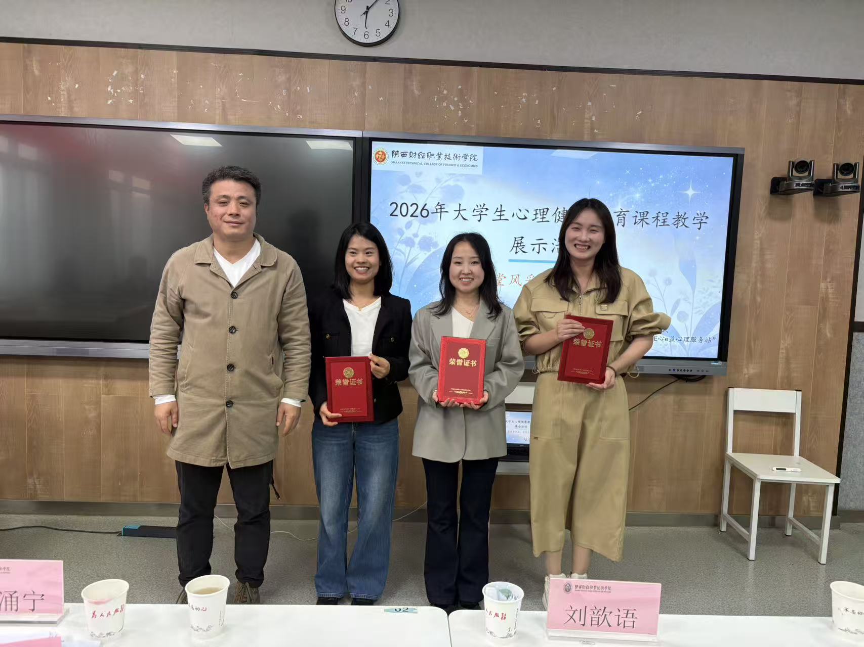 为深入贯彻落实《中共陕西省委教育工委办公室关于开展春季学期陕西高校学生心理健康工作集中攻坚暨陕西高校心理育人宣传季实践活动的通知》文件精神,进一步提升我校心理健康教育课程教学质量,发挥课堂教学在心理育人中的主阵地作用,2026年4月7日下午,我校心理健康教育课程教学校级现场展示活动在综合楼718智慧教室顺利举办。本次活动由我校学生工作处主办,大学生心理健康教育中心、金融工程与现代技术学院“E心e益”心理服务站、静歆·筑梦辅导员工作室承办。活动特别邀请了全国大学生职业生涯规划大赛课程教学赛道金奖获得者钱涌宁、陕西高校思政课教师大练兵展示活动“教学标兵”孙兴、往届陕西省高校心理健康教育课程教学展示获奖者刘歆语和王依姣、校级课程思政创新大赛获奖者吝代代担任评委。活动由金融工程与现代技术学院团总支副书记、“E心e益”心理辅导站站长张静瑜主持。
