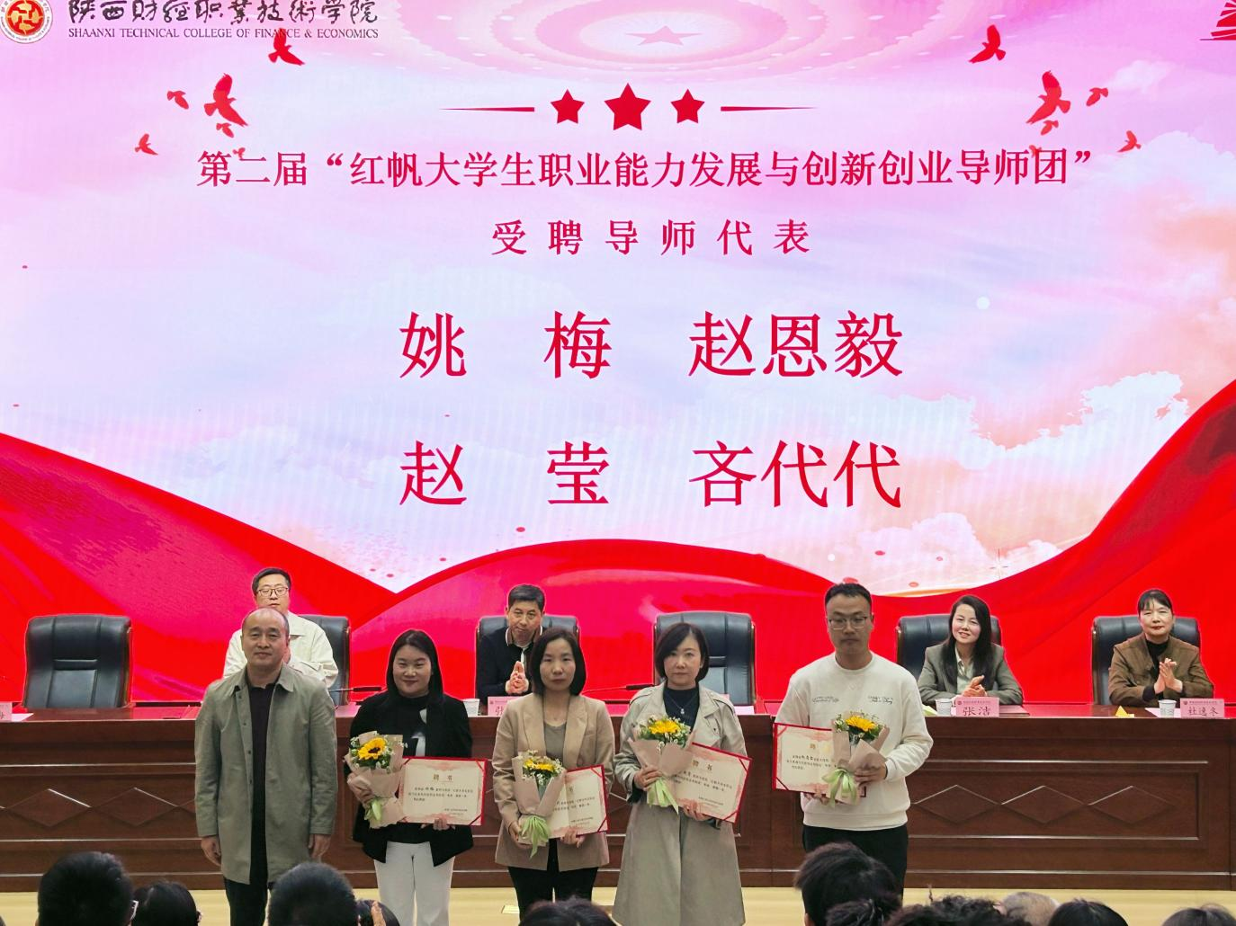 乔晶策为导师团代表颁发聘书,张洁为学生团队授予活动月旗帜。鲜红的聘书承载责任,鲜艳的旗帜传递使命,标志着学院育人支撑体系进一步完善。