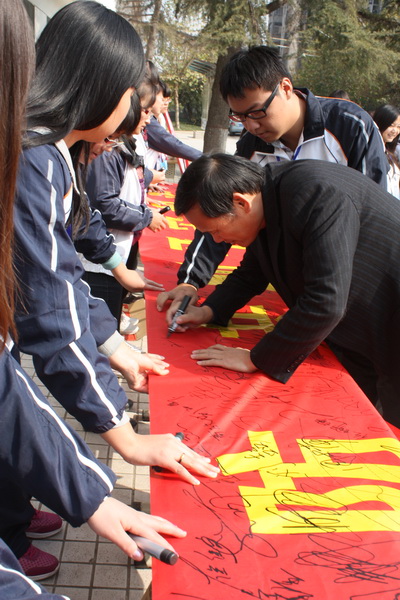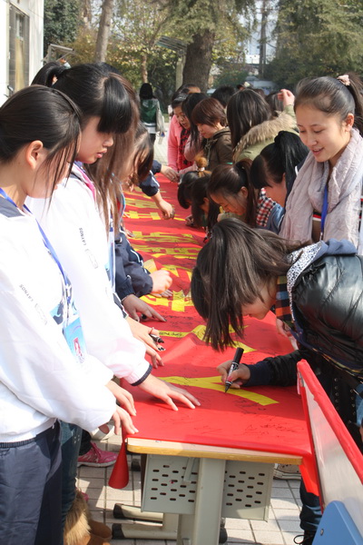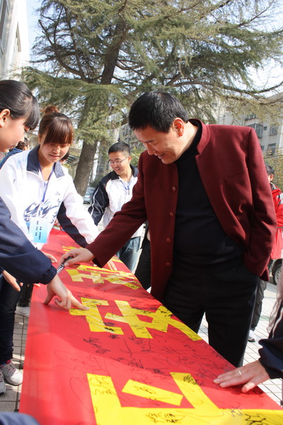 为了普及消防安全常识,提高学生消防安全意识,增强学生消防自救能力,预防火灾事故发生。近日,我院开展了“人人参与消防,共创平安和谐”的专题宣传活动。院党委书记凌喜春、副院长刘晓玉、党委副书兼纪委书记刘文雅,及5000余名师生到场观看并签字。