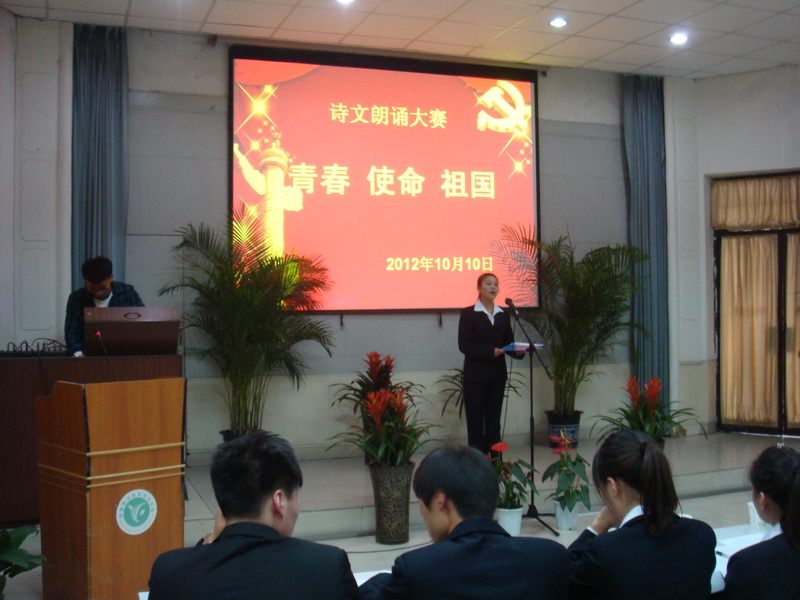 为了庆祝祖国63岁华诞,引导同学们理性爱国,激励同学们奋发图强,院团委于9月20日至10月10日举办了以“青春•使命•祖国”为主题的诗文朗诵大赛。