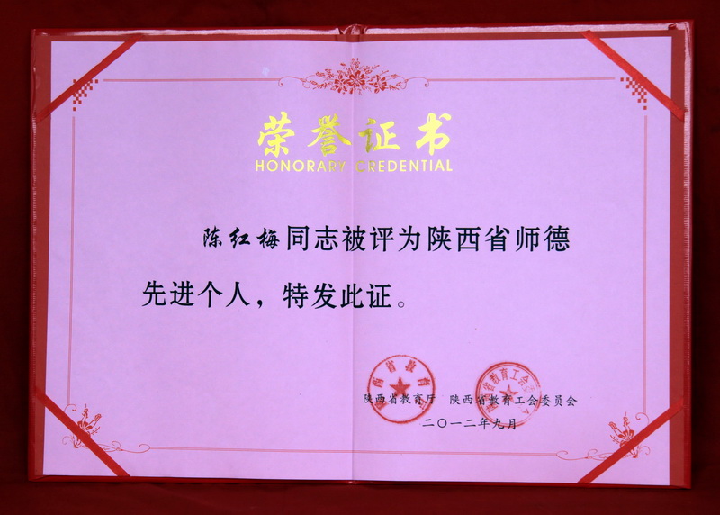 日前,陕西省教育厅、陕西省教育工会委员会联合发文表彰“2012年陕西省师德标兵、先进个人和先进集体”。我院陈红梅老师获得“陕西省师德先进个人”、信息工程系获得“陕西省师德建设先进集体”荣誉称号。据悉,本次全省共评选出100名师德先进个人、90个师德建设先进集体。