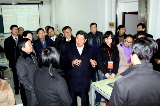 在学生食堂,杨厅长耐心听取管理人员的介绍后说,民以食为天,伙食是关乎学生健康、保证教学的关键环节,一定要保证质量和安全。他还就创新管理、办好伙食,与炊管人员进行了亲切交流。在ERP实验室,杨厅长与正在上沙盘实训课的师生进行了交流。他耐心询问,仔细了解教师的课堂实训效果、市场营销专业社会顶岗实习、就业等情况,并对校内实训与企业实习提出建议。在视察多功能运动场和学校预留空地时,杨厅长对学校的硬件建设和规模表示了极大关注,希望学校放眼未来,积极发展。在参观校史馆时,各位领导对51年来学院的发展成就和人才培养成绩给予高度赞赏。