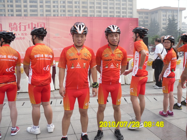 7月23日,由中国轻工业联合会、中国关心下一代工作委员会和中国自行车协会共同主办的“低碳行动骑行中国”2011大学生红色之旅骑行活动西安—延安段启动仪式在陕西省西安市新城广场隆重举行。陕西省人大常委会原副主任、陕西省关工委主任李天文,陕西省人民政府原副省长、陕西省老年体育协会主席潘连生,中国自行车协会理事长马中超,陕西省关心下一代工作委员会、陕西省精神文明办公室、陕西省教育厅、共青团陕西省委、陕西省妇联、西安市关工委、我院和省内部分高校领导及有关单位出席了西安-延安段的启动仪式。