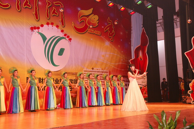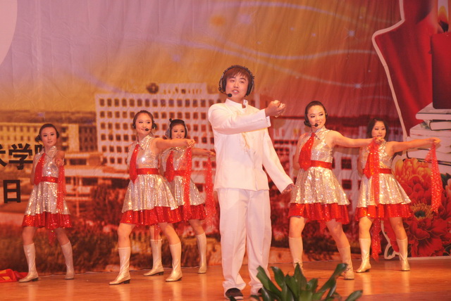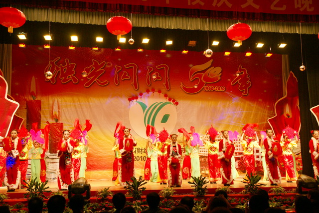 10月28日晚,学院礼堂团花锦族,彩灯闪烁,喜气洋洋。我院建校50周年系列活动的重头戏---文艺晚会在这里举行。