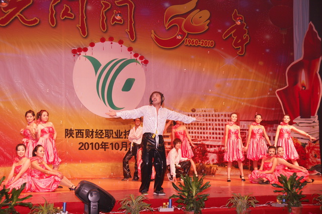 校庆文艺晚会的主题是:“烛光闪闪50年”。寓示着50年来,陕财职院历届领导和教职员工薪火相继、励精图治、团结拼搏,辛勤耕耘、无私奉献、春风化雨,培育了一批又一批的优秀财经管理人才,为社会进步和经济发展做出了积极的贡献。50圈年轮,记载着时间的沧桑和峥嵘;50载春秋,铭刻着步履的铿锵与荣光。