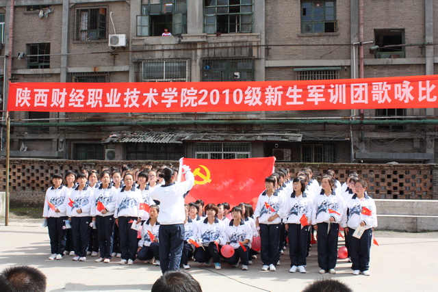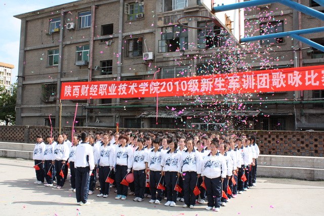 2010年9月10日下午三时,陕西财经职业技术学院南校区2010级新生军训歌咏比赛在南校区篮球场举行。信息工程系、会计系2010级近千名军训新生以连为单位(分为十个连队)进行了比赛,院学工部王铁练副部长、甘少华老师、张朴老师参与了本次活动。