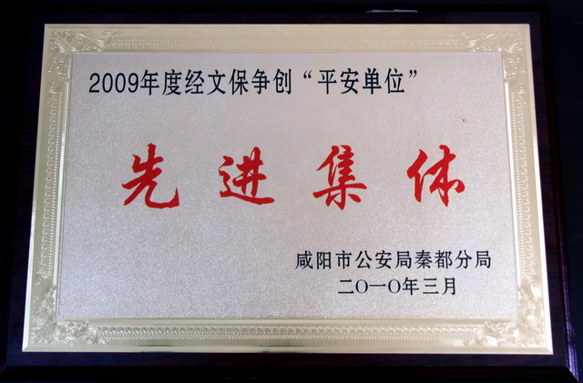2009年,我院安全保卫工作措施得力,成效显著,被咸阳市公安局秦都分局评为“先进集体”。
