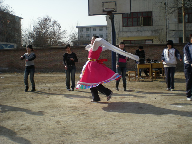 下午2点,阳光洒满大地,操场上同学们欢聚一堂,联欢会正式开始了。冬天虽然寒冷,同学们的心却是热的,随着热烈的掌声由会电14班同学为大家带来的优美藏舞《吉祥瑶》出场了,伴着欢快的舞步和甜美的歌声,我们仿佛走进了美丽的大草原,几位美丽的姑娘翩翩起舞,同学们的心情已经完全沉浸在了节日的喜庆当中。紧接着一系列精彩节目呈现出来,由会计7班同学演唱的《一比一》和会电12班的赵允同学唱的《王妃》引得全场同学与他们共同歌唱。会电14班的赵丹、李成飞同学为大家带来了三句半,他们搞笑的表演更是将会场的气氛带到了高潮。