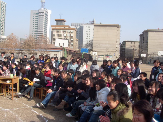 节目中,南校区办公室的张朴、程军锋老师为同学们演唱了歌曲《澎湖湾》、《敢问路在何方》,南校区的王娟和王小翠老师为同学们演唱了歌曲《阳光总在风雨后》,几位老师的助兴演唱得到了全场同学热烈的掌声。