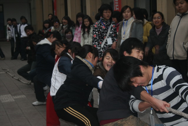 2009年12月10日下午陕财职院南校区学生分会在东教学楼前举行了一场振奋人心的拔河比赛,全院共有17支代表队参赛,南校区所有老师及同学都参加了本次活动。
