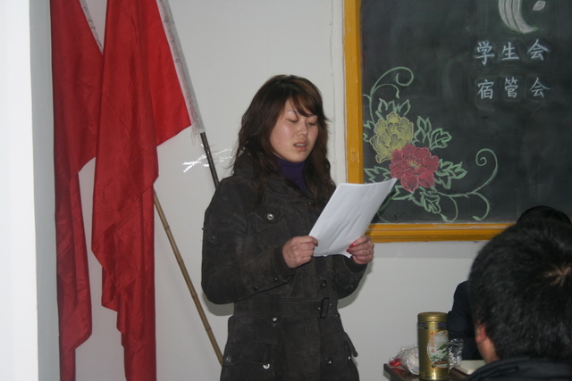 会上,宋波老师和郭宝东老师分别宣读了南校区学生分会和宿管会学生干部的任命决定,并宣布了各部门成员名单。南校区学生分会主席李佩英和宿管会主席田哲分别代表南校区学生分会、宿管会做了发言,简要汇报了本学期工作计划。