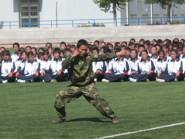 大会在雄壮的国歌声中开始。军训团团长张剑峰同志宣布了军训团编制,20余名教官为与会领导和学员做了精彩的军事技能表演,队列示范、拳术表演、倒功配套,博得大家的阵阵掌声。党委书记文锋同志作了重要讲话,鼓励同学们发扬解放军不怕疲劳的优良作风,刻苦训练,圆满完成军训任务,要求教官严格训练、严格要求,军民携手共育英才。之后教官代表、学生代表分别表了决心,一营和三营分别向二营和四营发起挑战,二营和四营勇敢应战,把会议气氛推向高潮。军训团政委王铁练宣布了军训团纪律和作息时间,最后院长阎平代表学院向军训团授旗,军训团团长接旗后面向学员挥舞致意,会议在热烈的气氛中结束,达到了预期的效果。