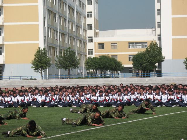 2008年9月5日下午3时,我院2008级新生军训动员大会在学院新建的塑胶操场上召开。