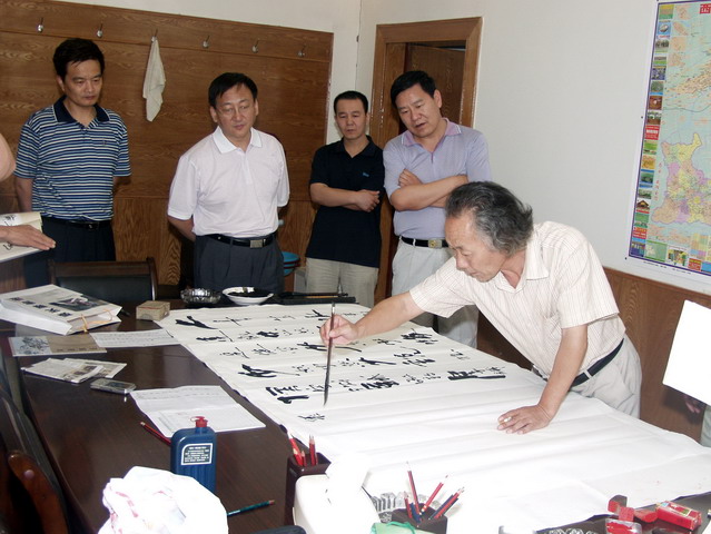 9月2日下午,陕西书画院副院长、陕西书画艺术研究院副院长张天翔来我院挥毫献艺。张先生的书法苍劲中见大气,雄浑中见洒脱,厚重中见飘逸,有一种独立独行之感,百年陈酿之味。院领导阎平、范忠、刘建彪、刘文雅等亲临目睹了张先生的自如挥洒,先生一幅幅或格言或警句或哲理的书作每每落笔摁印,便赢得一阵阵喝彩和掌声。