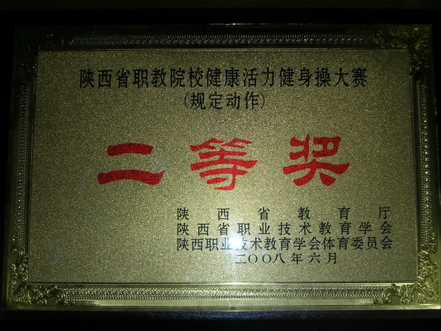 由陕西省教育厅、陕西省职业技术教育学会主办,陕西省职业技术教育学会体育委员会协办,陕西财经职业技术学院承办的“天力杯”08年陕西省职教院校健康活力健身操比赛,6月29日在陕西财经职业技术学院落下帷幕,陕西财经职业技术学院健美操队获得自选动作一等奖和规定动作二等奖的好成绩!