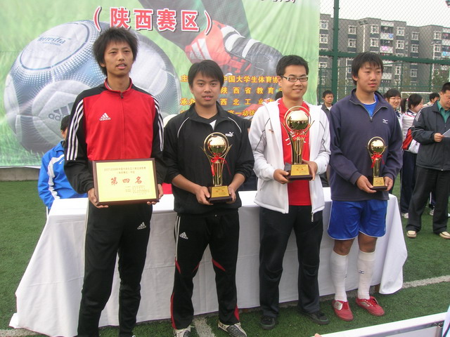 在A组小组比赛中,我院足球队以四战三胜一负的成绩名列小组第二名进入前四名,半决赛中,我院足球队以2∶1的比分战胜B组第一名西安建筑科技大学足球队进入决赛,在决赛中,我院足球队以3∶6的比分输给西安交通大学足球队,荣获本次大赛的亚军,另外我院足球队队员徐强同学被本次比赛组委会评为最佳射手称号。