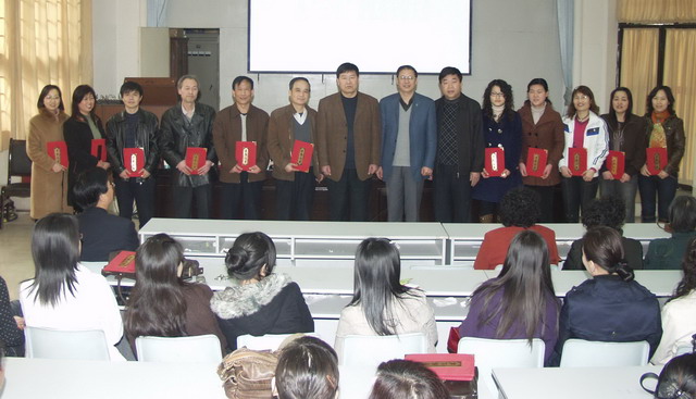 大会由学院工会委员崔斗老师主持,女工委员赵文红老师宣读了学院工会2007年各项优秀评选的表彰决定,曹耀辉等32名会员被评为“五好文明家庭”,白乃琴等14名会员被评为“三•八红旗手”,薄阿维等15名会员被评为“好媳妇”称号。文锋书记、刘文雅副书记和院工会委员为获奖会员颁发了奖状和奖品。