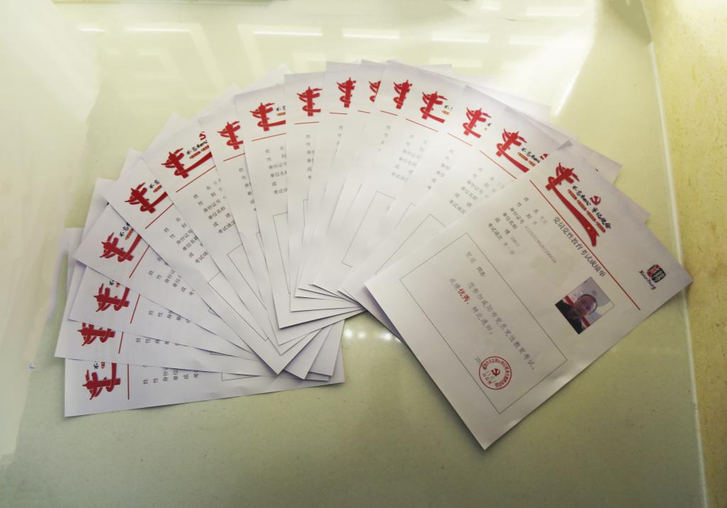 在党性教育体检厅,大家重温入党誓词,一起高唱《没有共产党就没有新中国》。对照优秀党员的先进事迹,对照党员管理“十条红线”和党员负面言行清单,大家接受了党性体检和测试,进行自查自检,查找自己思想和行动中的不足。